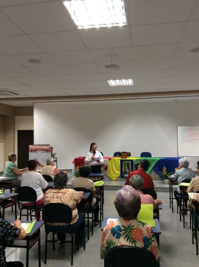 Após esse momento, nossa Assessora, Maria Inês Vieira Ribeiro, mad, dirigiu-se às Capitulares com palavras cheias de sabedoria e inspiração. Ela nos lembrou, com profundidade, que este tempo deve ser verdadeiramente um tempo do Espírito Santo. É preciso permitir que Ele conduza nossos movimentos, pensamentos e ações, pois Deus fala a nós de muitas formas, nos pequenos gestos e nos acontecimentos diários.