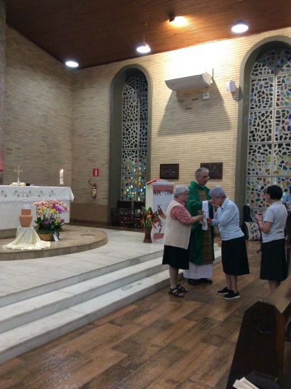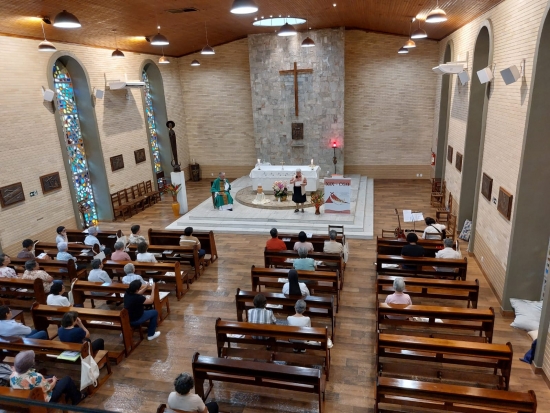 Na homilia, o Padre Nédio, com palavras cheias de fraternidade e carinho, nos encorajou a vivenciar intensamente este tempo de graça em nossa Família Religiosa. Ele nos recordou a necessidade de estarmos sempre atentas aos toques de Deus em nossas vidas, ouvindo-O com o coração aberto e disponível.