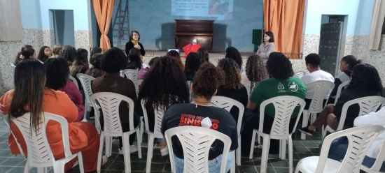 Durante a vigília, permanecemos na Paróquia, onde participamos da Santa Missa. As Irmãs Gorete Alves e Gislane Paiva de Araújo, por ocasião do Mês Vocacional, partilharam sobre a nossa Congregação com as jovens, responderam às suas dúvidas e deram testemunho de sua vocação.
