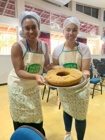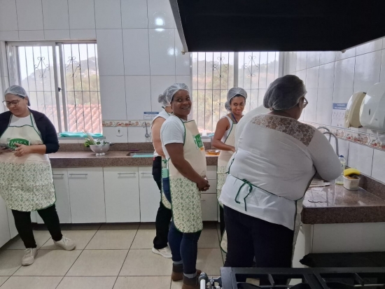 O curso aconteceu no mês de julho deste ano e teve como conteúdo programático: Noções Básicas de Alimentação e Nutrição, Técnicas de Manipulação de Alimentos, Higiene e comportamento pessoal, Organização e Controle do Almoxarifado (dispensa), Consumo Consciente e Aproveitamento Integral dos Alimentos, Oficina Culinária de Aproveitamento Integral dos Alimentos. E como público alvo as funcionárias da cozinha e as que fazem a Higienização e Sanitização das doações recebidas antes de chegarem na cozinha.