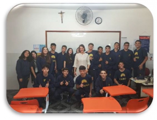 A turma participou de forma ativa e atenta, demonstrando interesse, formulando questionamentos pertinentes e aproveitando a oportunidade para ampliar seus horizontes sobre como o empreendedorismo pode transformar realidades e gerar impacto positivo na comunidade.