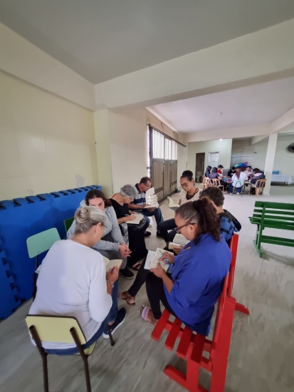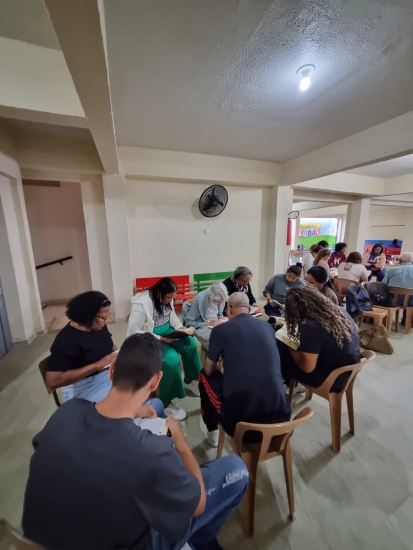 A leitura e reflexão do texto de Romanos 5,1-13, feita em pequenos grupos, favoreceu a interação e a participação de todos.