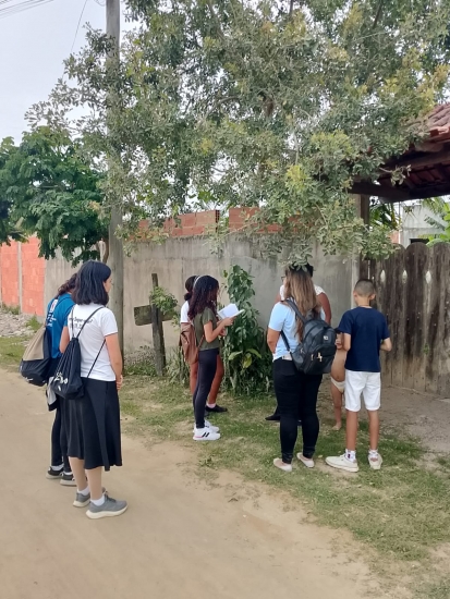 Com um misto de timidez e animação, partimos em missão para visitar as famílias em um setor mais carente do bairro. De porta em porta, procuramos levar a presença de Deus, um pouco de esperança e doar o nosso tempo em atitude de escuta e abertura às realidades encontradas.