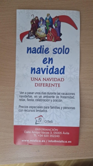 O Centro Internacional Teresiano e Sanjuanista – CITeS vive o Natal de um jeito muito próprio, cheio de simplicidade e encanto, como quem acende uma luz no coração do inverno. Sob o lema “Nadie solo en Navidad” (ninguém sozinho no Natal), a comunidade abre as portas para todos os que desejam celebrar estas festas de forma diferente: em clima de fraternidade, alegria, oração e, também, de merecido descanso no recesso de fim de ano. Os preços oferecidos são acessíveis, com condições especiais para famílias e para quem dispõe de menos recursos.