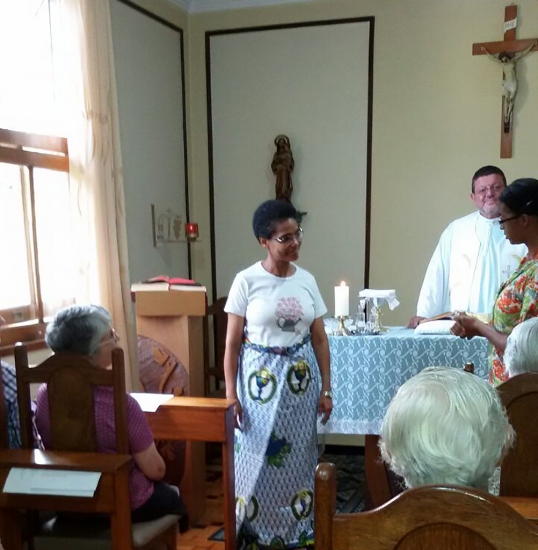 Após a mesa da Eucaristia, foi oferecido um lanche gostoso no refeitório da Comunidade. Que a Madre Fundadora e o Fundador Padre Júlio Maria olhem com carinho de eternidade para as Irmãs brasileiras em Angola.
