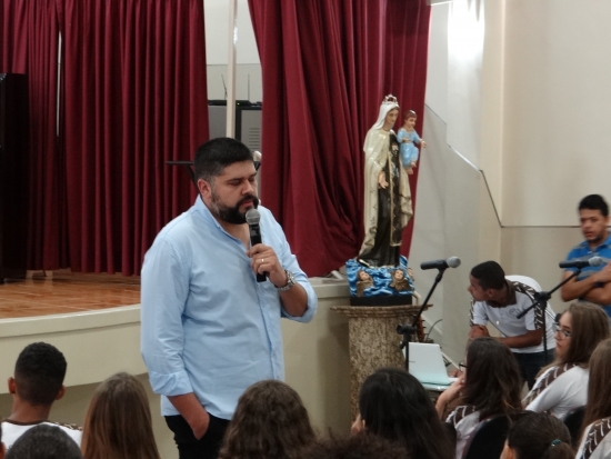 O evento, que aconteceu no Anfiteatro Irmã Clotilde, contou com a participação dos alunos do Ensino Fundamental II e com as explicações do professor de Biologia do Ensino Médio, Wesley Vieira, sobre o tema da Campanha:“Fraternidade: biomas brasileiros e defesa da vida” e o lema “Cultivar e guardar a criação” (Gn 2.15).