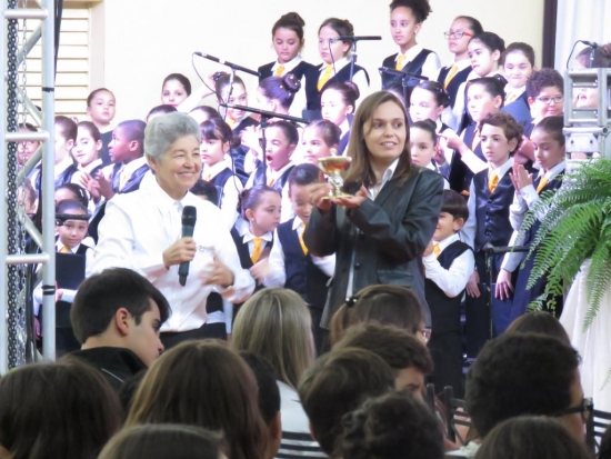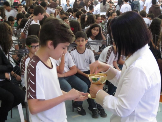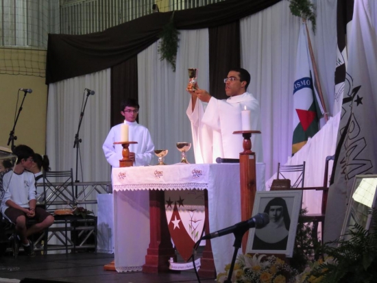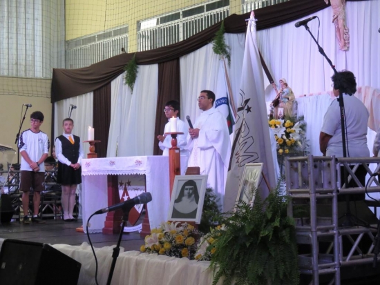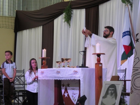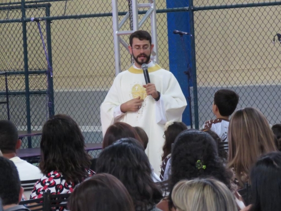 No período da tarde, o Padre Geraldo realizou uma missa especial para as crianças, que acompanhadas de seus pais e educadores, também participaram da comemoração dos 100 anos do Colégio Carmo.