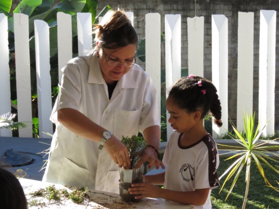 As turmas estão iniciando os estudos sobre as plantas, por isso foram levados pelas professoras ao Jardim da Ciência para aprenderem um pouco mais sobre o plantio, as necessidades e os cuidados com as plantas. Na atividade, cada aluno plantou, em uma garrafa, uma mudinha, que será cuidada por eles. Os estudantes conheceram e plantaram mudas de hortelã pimenta, hortelã, poejo, cebolinha e orégano.