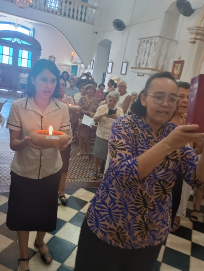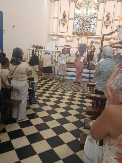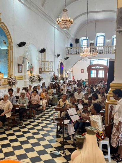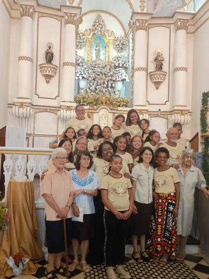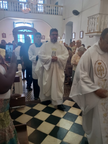 Após a celebração, houve um momento fraterno de partilha e confraternização. A alegria era contagiante, e o ambiente refletia a beleza de uma família espiritual que se alegra unida.