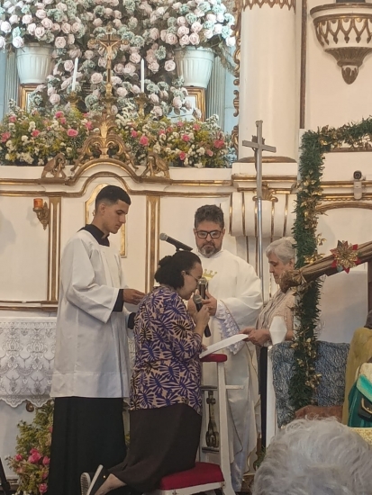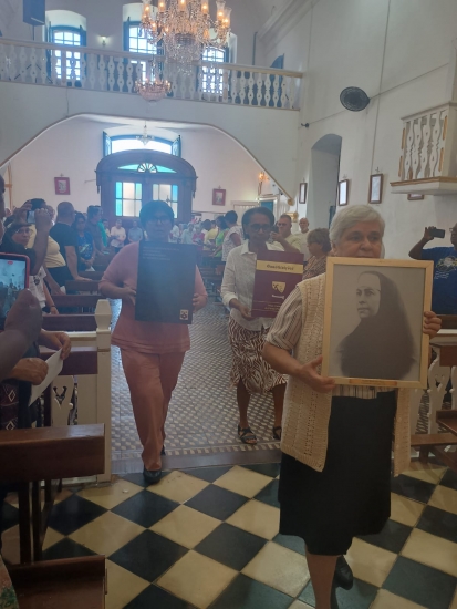 Um dos momentos mais emocionantes da celebração foi a Profissão Religiosa dos Primeiros Votos da jovem Beatriz Marques Dias, que escolheu consagrar sua vida a Deus na família de Madre Maria das Neves. Em sua entrega, renovou-se o vigor vocacional da Congregação, como uma árvore que continua a florescer e dar frutos ao longo do tempo.