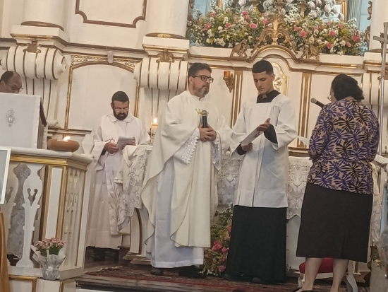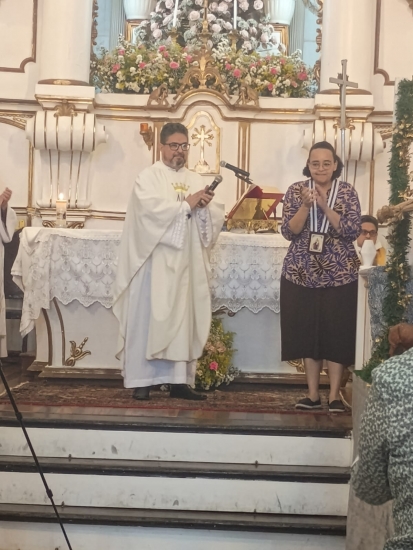 A Eucaristia, presidida pelo Padre Renato César Stampini Oliveira, amigo da Congregação e Pároco da Paróquia Santa Rita de Cássia, em Cataguases/MG, foi muito feliz em sua homilia, unindo passado, presente e futuro. Padre Renato destacou a importância de reconhecer a Providência Divina em cada etapa da história da Congregação, incentivando todos a permanecerem firmes no amor e na fé. Também marcaram presença concelebrando com Padre Renato os Padres José Domício Ferreira da Silva, Rhawy Chagas Ramos e Édio Joaquim Moreira.